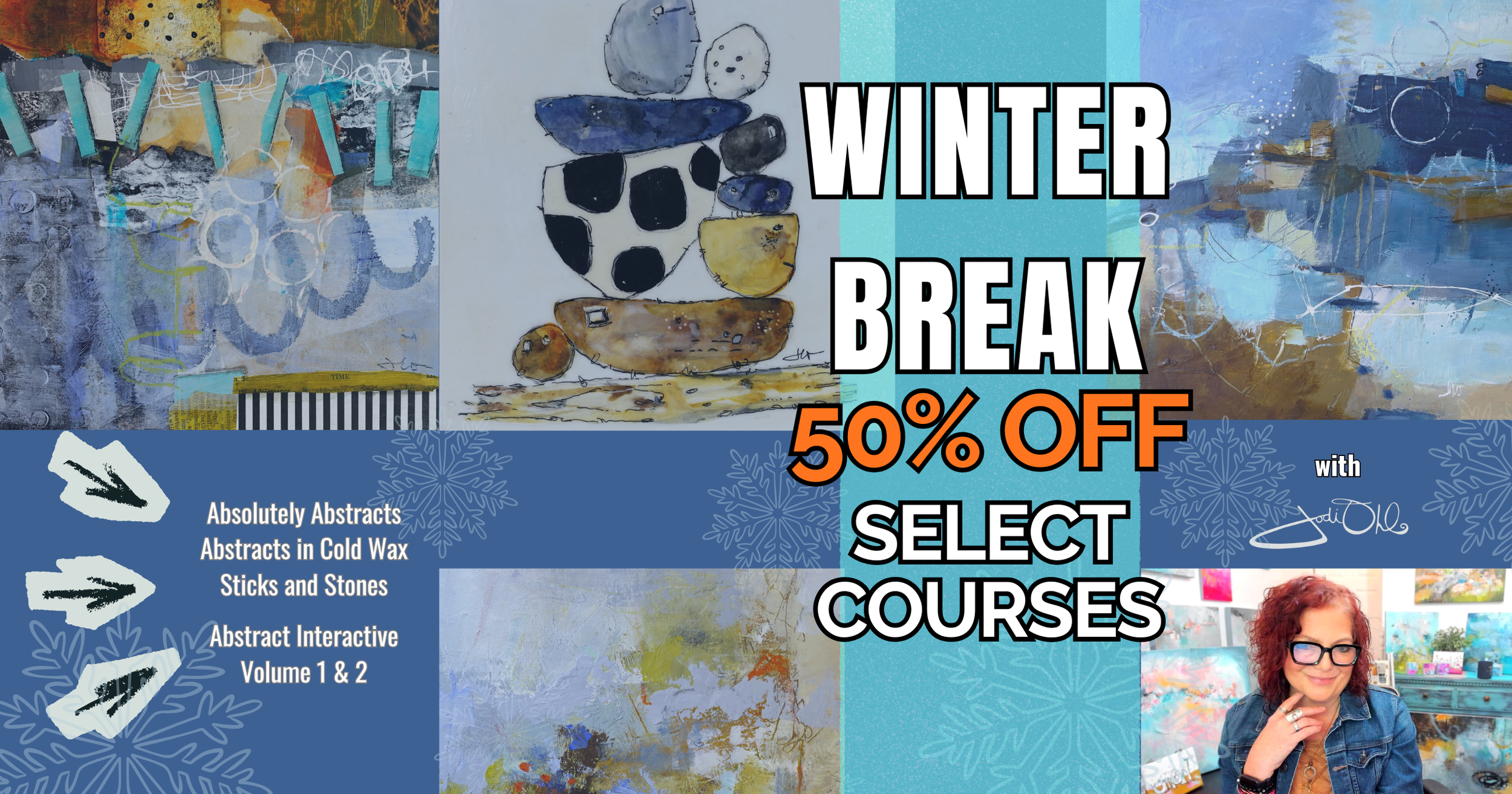 Winter Break: Save 50% off Select Abstract an Illustrative courses. Workshops on special include: Abstract Interactive Volume 1 & 2, Absolutely Abstracts, Abstracts in Cold Wax and Oil, and Sticks and Stones.